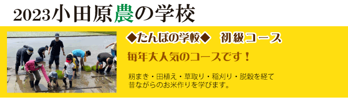 神奈川県栽培推奨品種の「はるみ」を籾まきして苗を作り、手植え、草取り、稲刈り、脱穀など昔ながらの米作りを体験。脱穀、籾摺り以外は機械を使わない昔ながらの農法で行います。